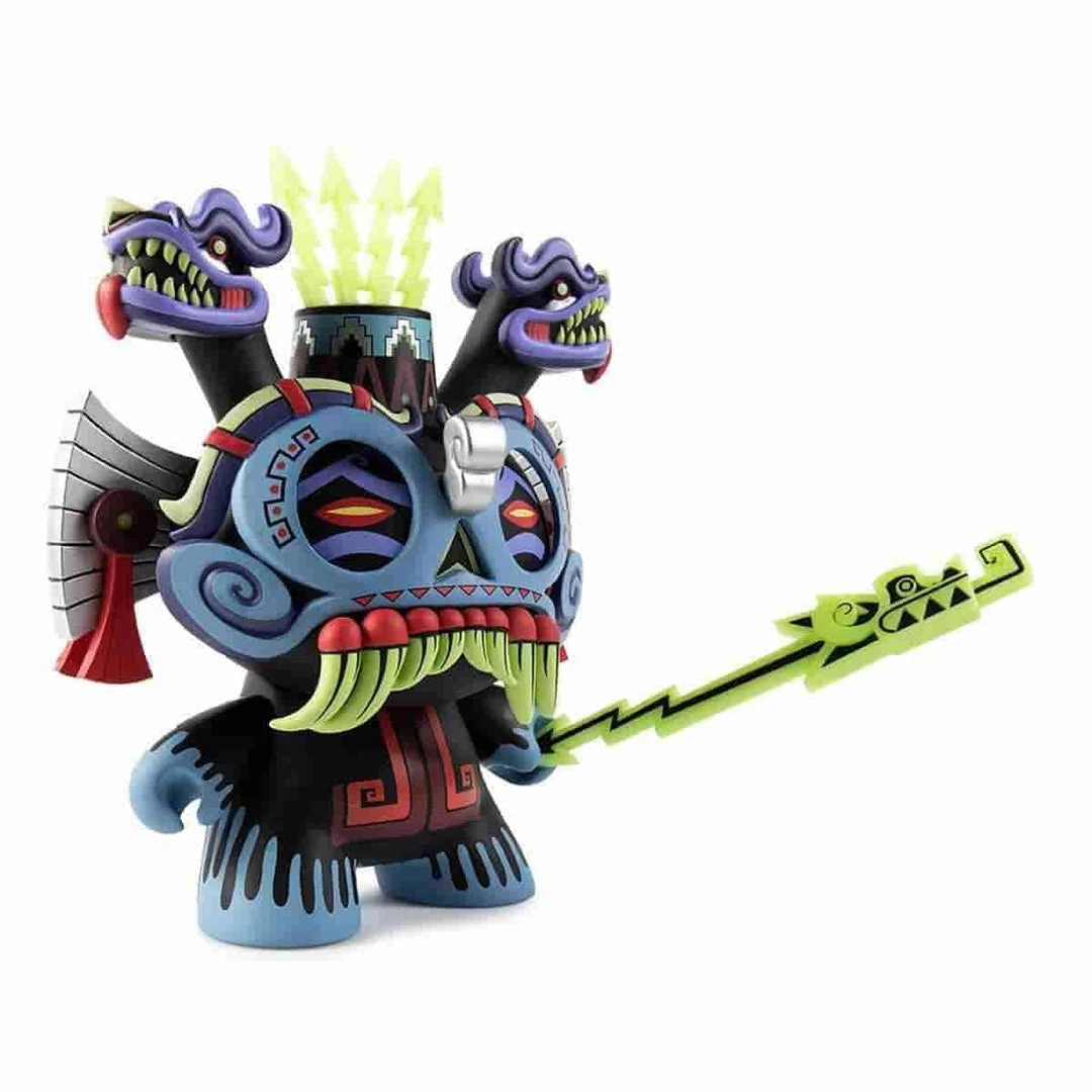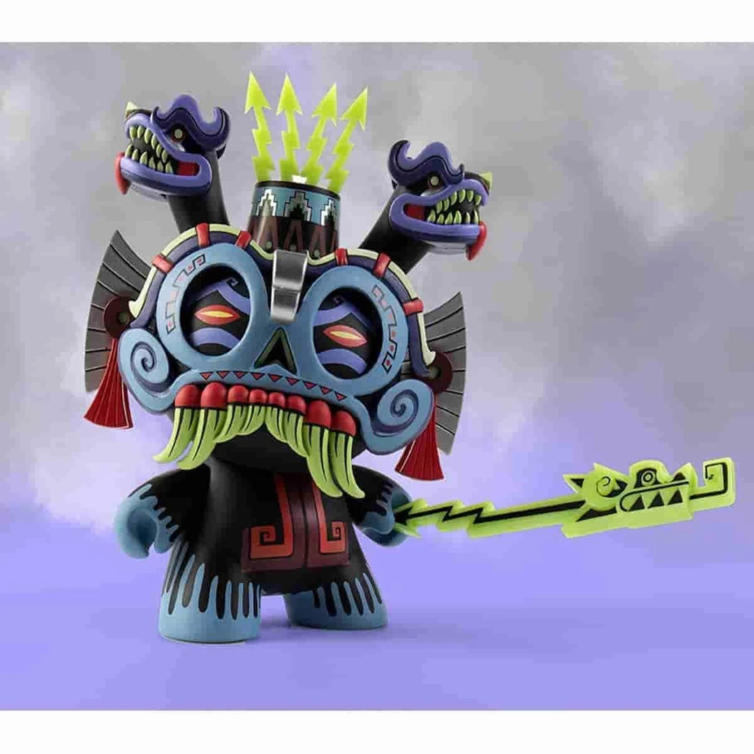 Called from the ancient origins of Aztec culture, Tlaloc the rain god gave mercy to those who worshipped him as a giver of life and sustainability. The Gods weren’t, however, always merciful. To the ancient traditions and tribes, Tlaloc was feared for punishing mortals with drought or sending terrifying storms to the earth to cause havoc and force starvation upon the lands. Towering at 8” high, this crowned deity comes with the traditional Aztec symbols and frightening fangs to be a striking addition to any Dunny collection.