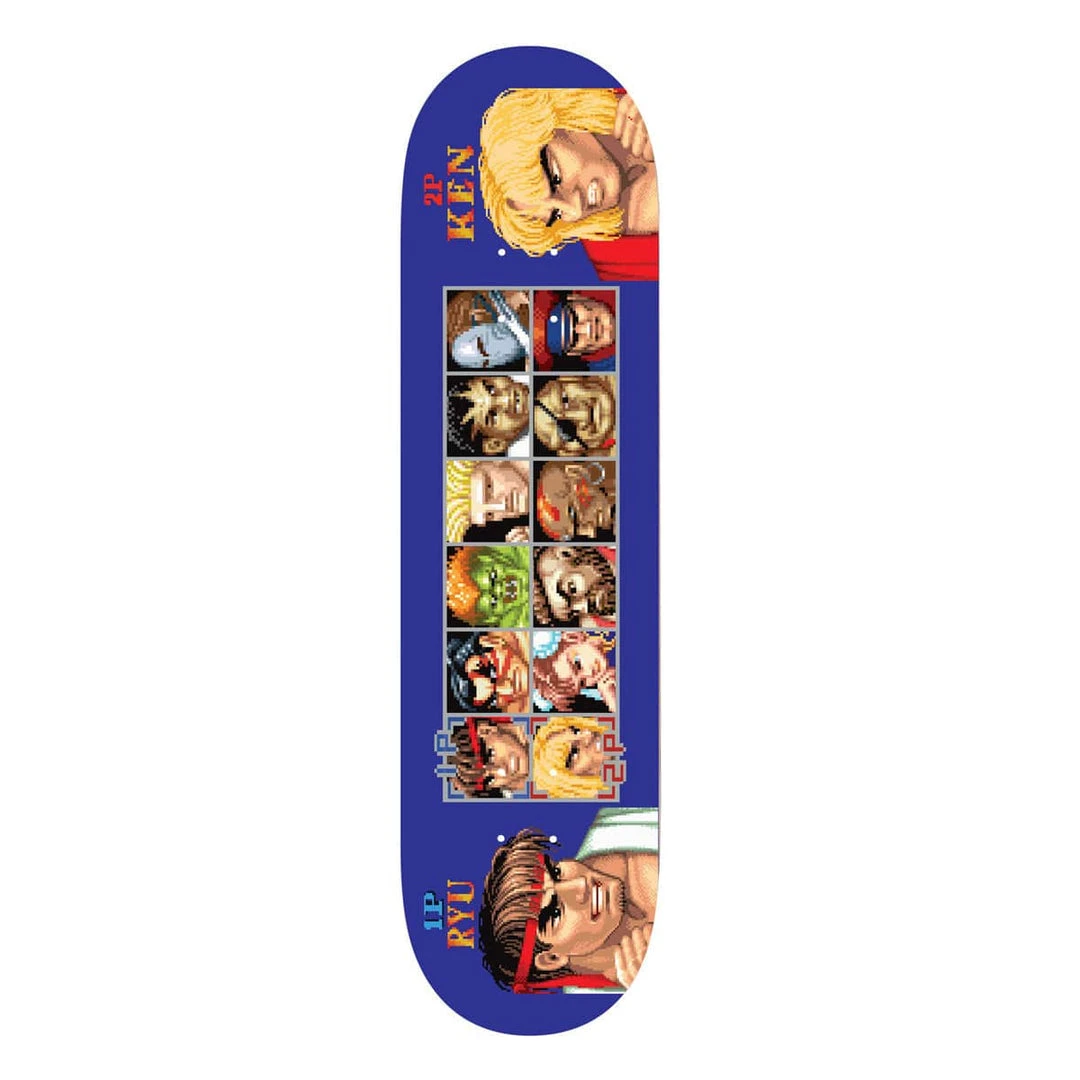 The Players Select Deck is part of the HUF x Street Fighter Collaboration—celebrating the iconic 16-bit arcade game of the late-80s and 90s. Made of premium 7-ply maple, the collectible deck features Street Fighter’s classic character selection screen and highlights the game’s main fighters, Ryu & Ken.