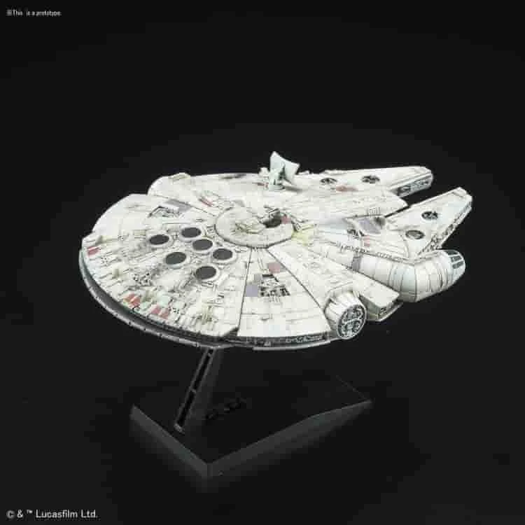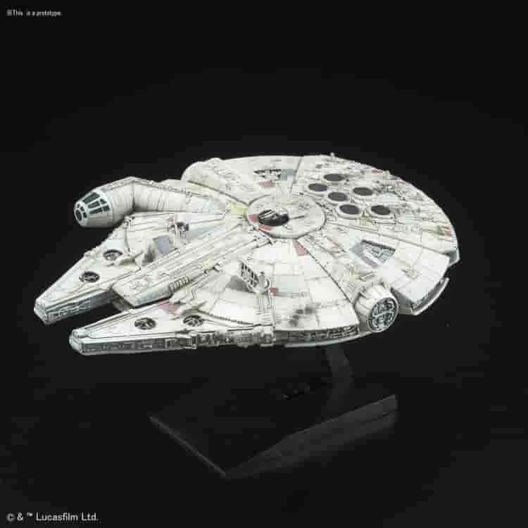 This model kit is an approximately 1/350 version of the Millennium Falcon as seen in “The Empire Strikes Back”, which includes the iconic 5 landing gear box layout and it includes display base.