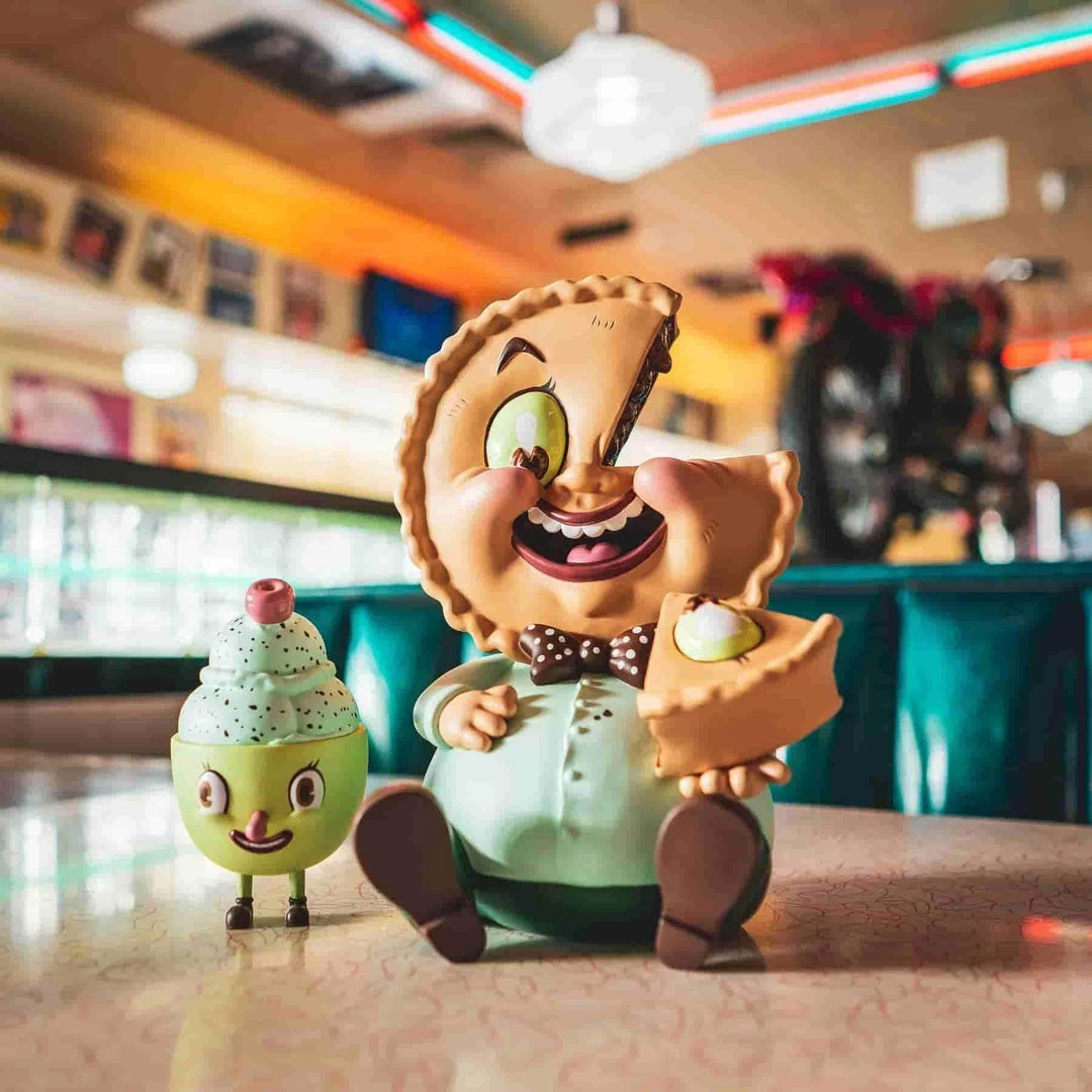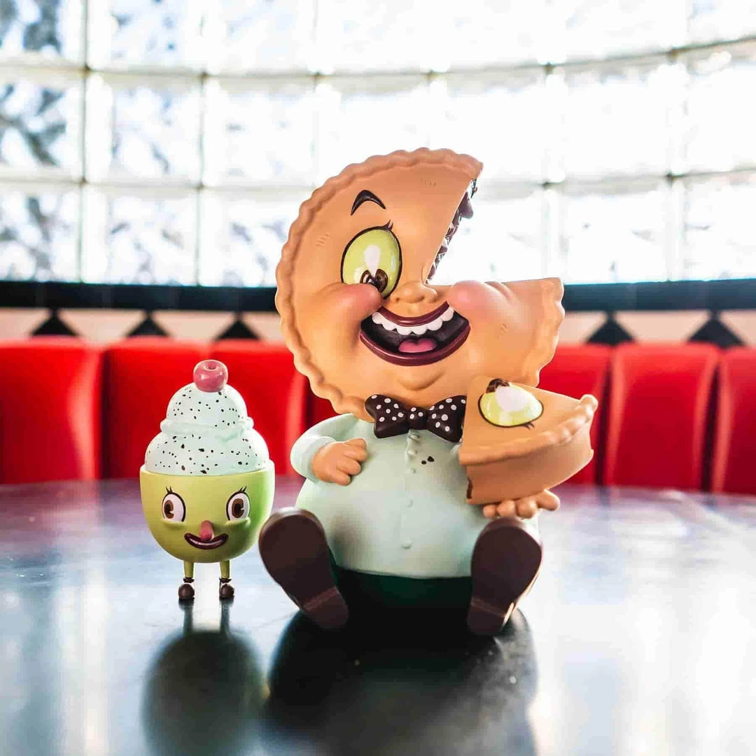 Each new edition of Mister Self Indulgence comes his own unique flavor Lil’ Scoopy… Mister Blueberry is paired with Strawberry flavor Lil’ Scoopy!  Yes that’s right you get two toys: the Pie Guy who stands 9 inches tall and his ice cream sundae company who is over 4 inches tall himself!