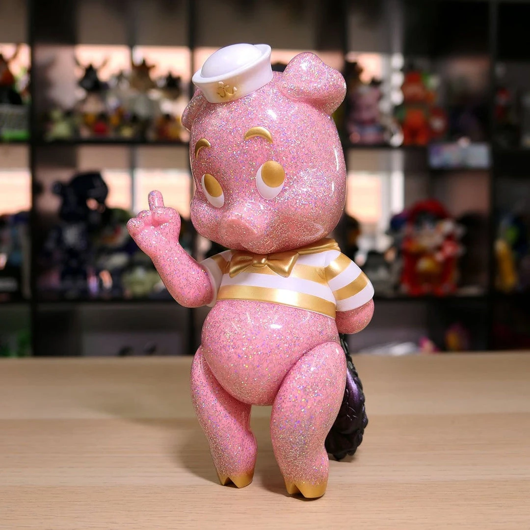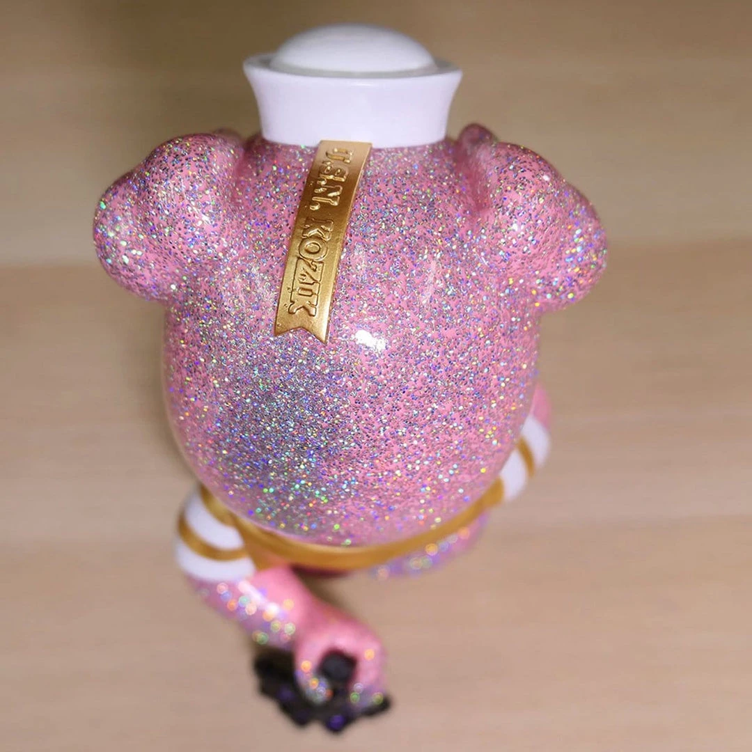 5 points of articulation(Head, arms and legs). Thanks to classic sofubi articulation, not only can he stand, he can sit, which is so adorable. This is the Sweet Angel edition that was released around Valentines Day and extremely hard to find. Double pour cast of PK and clear with rainbow sparking glitter. This Valentines special edition comes with a special bouquet casted and colored with pearly PU/GR by Chop of Monster Farm.