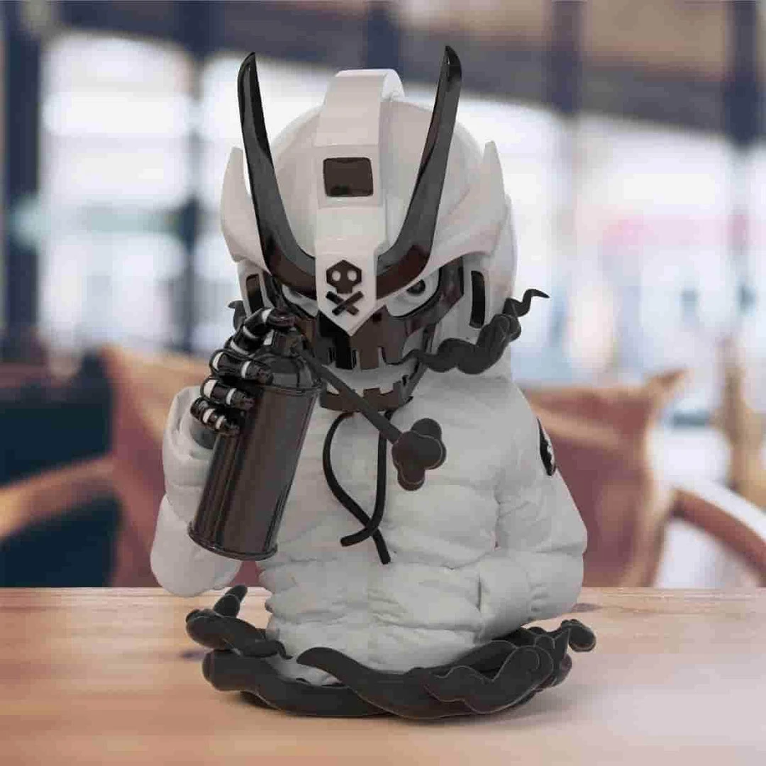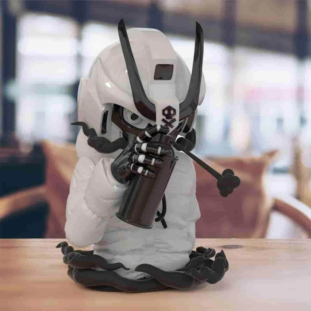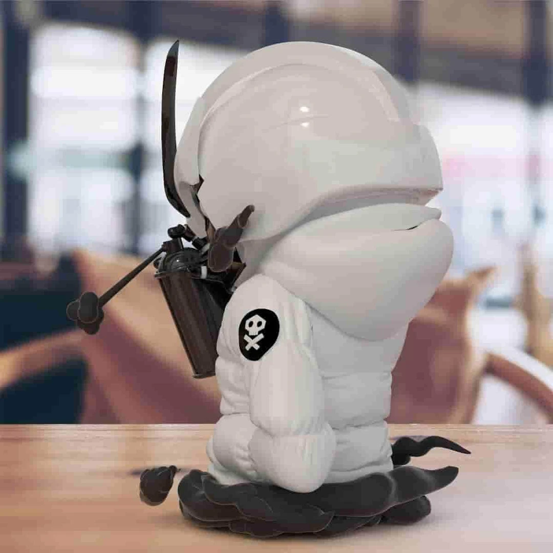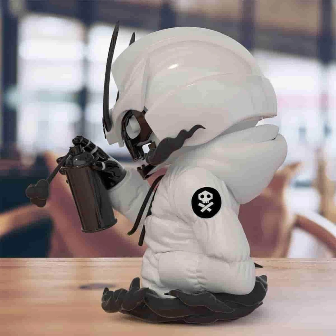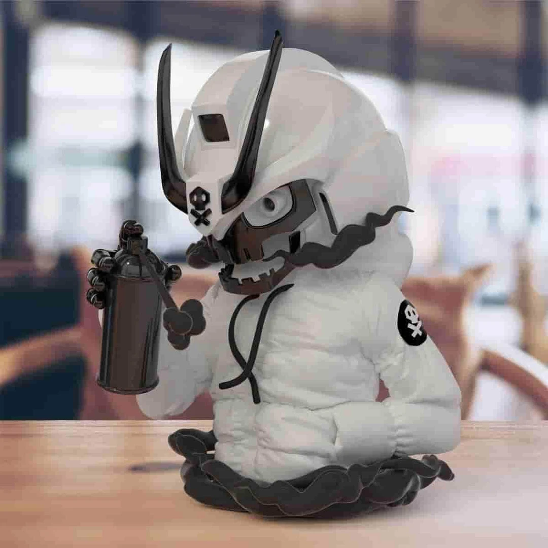 This half torso figure stands at 7.3″ inches tall and is a full vinyl production. Each Ravager will include a special authenticity card signed and numbered by the artist, @Quiccs himself. It will also include set of stickers for the spray can that you can choose to apply.