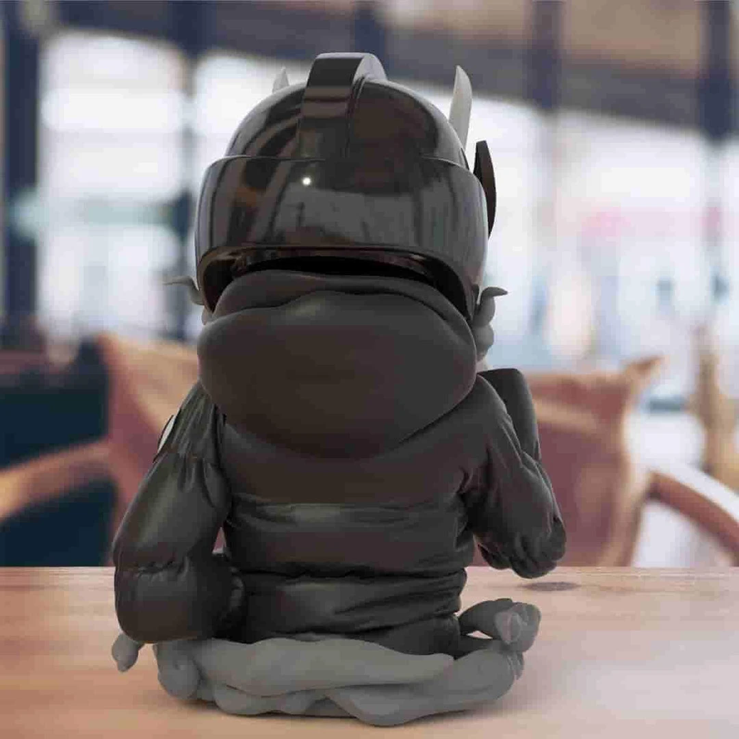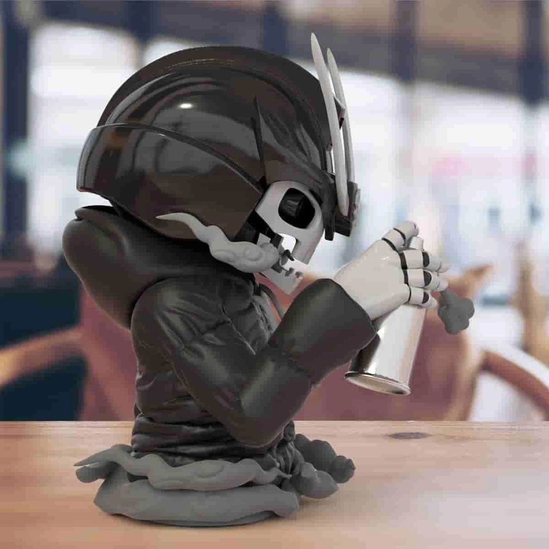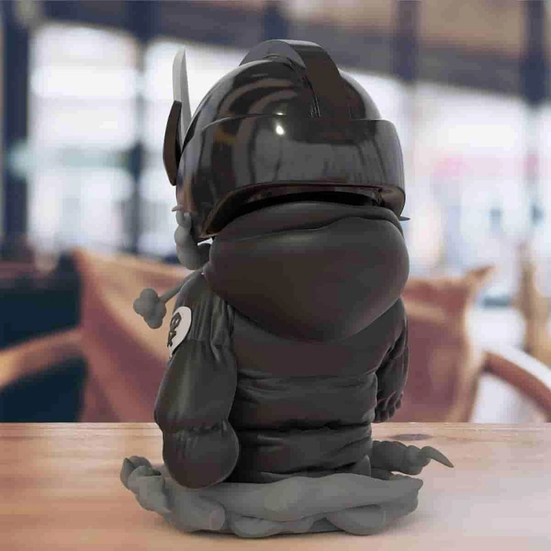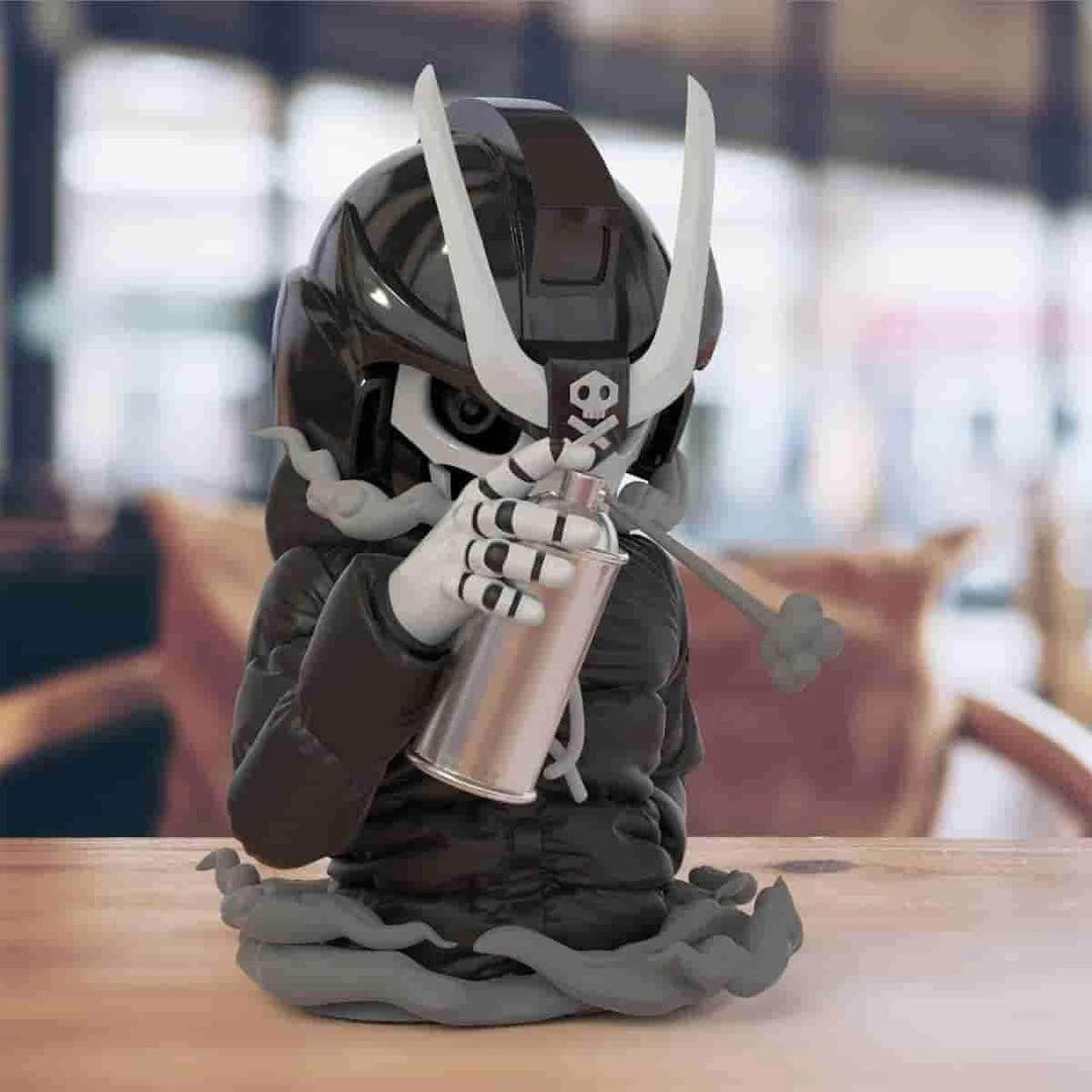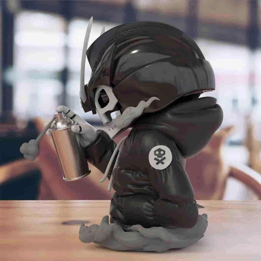 This half torso figure stands at 7.3″ inches tall and is a full vinyl production. Each Ravager will include a special authenticity card signed and numbered by the artist, @Quiccs himself. It will also include set of stickers for the spray can that you can choose to apply.