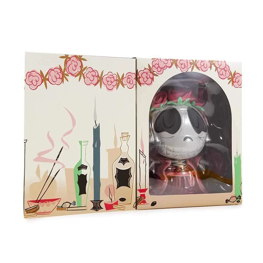 Warning off bad omens and protecting against negative magic, La Santa Muerte Dunny stands at the gate that welcomes those to the world beyond our own. Honoring the cultural deliverance of followers to the afterlife, Sante Muerte’s sunken Dunny skeleton bears nothing but one color with stars. Draped in black symbolizing strength to break hexes and dark magic, this 8” Dunny by artist, Stephanie Bucsema
