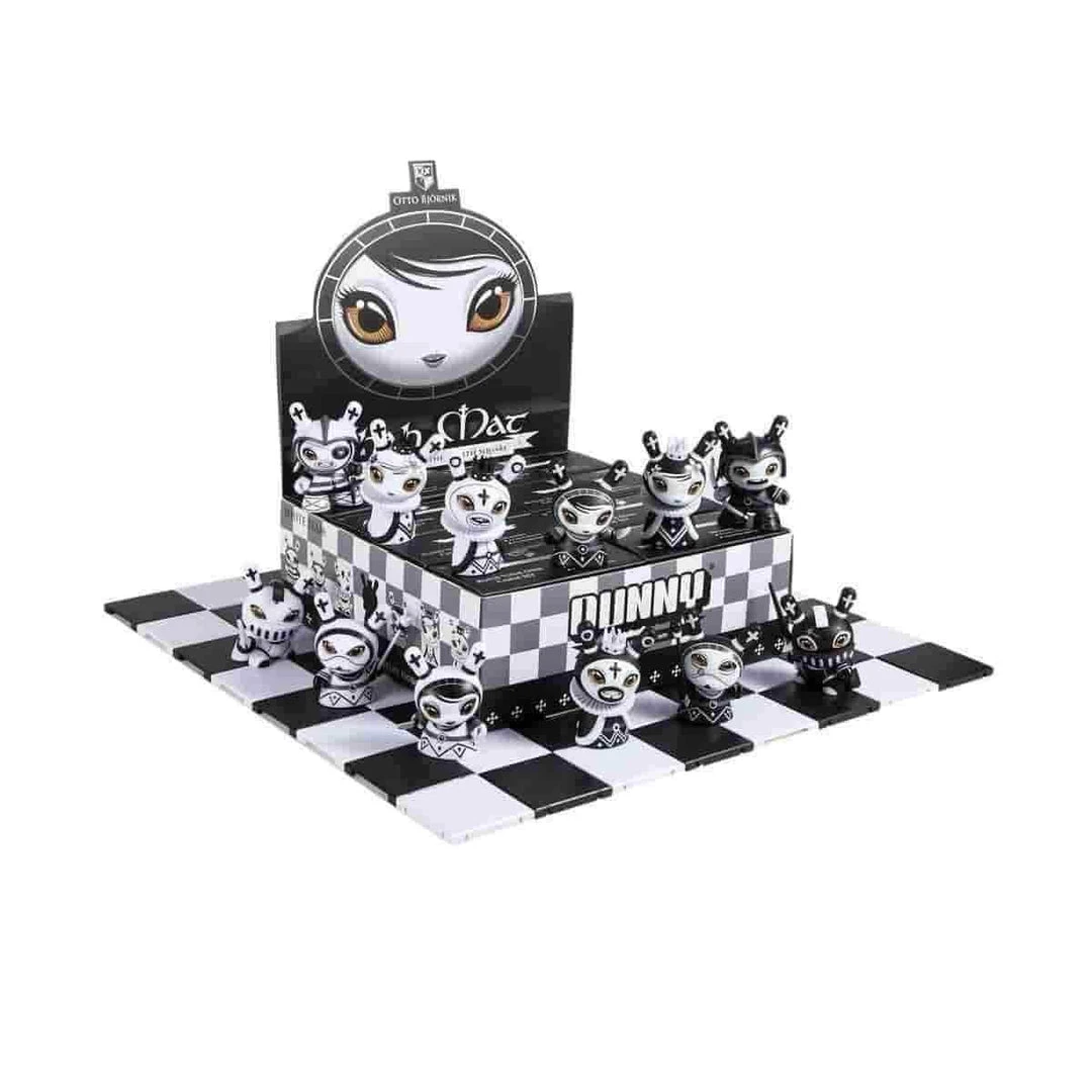 Each Shah Mat Dunny Two-Pack comes with one pawn Dunny, one mystery Dunny and four chess board tiles.