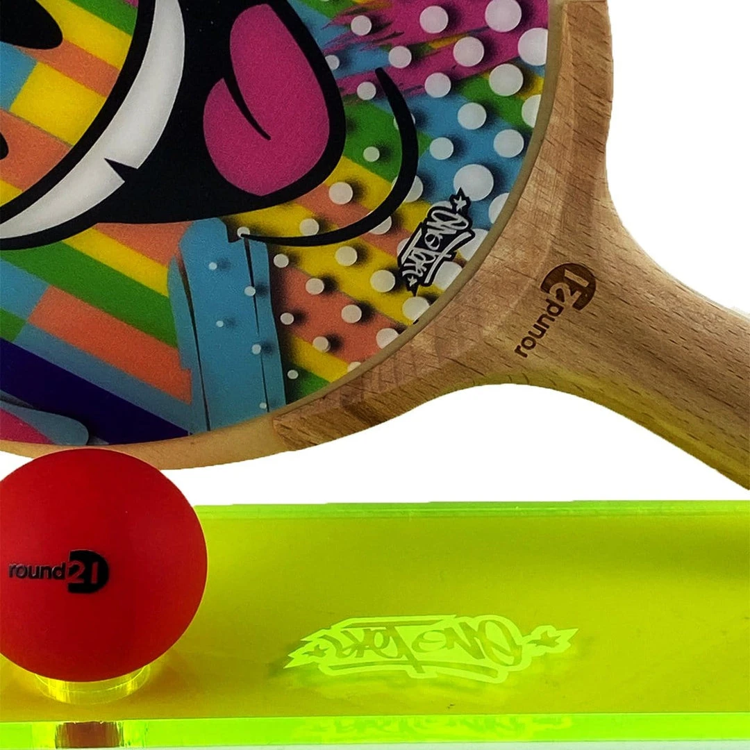 - Includes:Â 1 Sket One Paddle, 2 round21 color balls