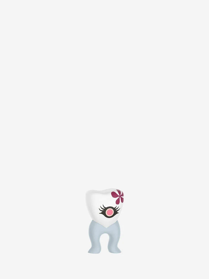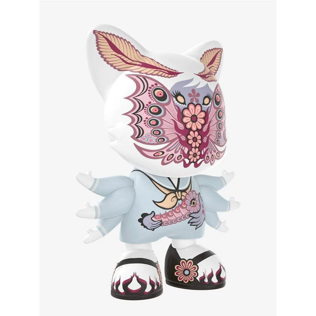 This ultra-fierce deity is outfitted in a traditional Japanese schoolgirl uniform and wears metallic pink flamed Mary Jane shoes. White Lotus SuperJanky’s magical tooth companion brings good luck and cats.
